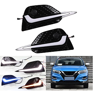 KEEN 12V New LED DRL for Nissan X-trail Rogue 2021 2022 Daytime Running Light Dynamic Turn Signal Lamp Driving Foglight