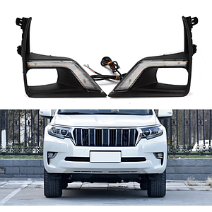 KEEN 12V Car LED DRL for 2018 Toyota Prado Daytime Running Light white and amber turn signal Fog Lamp cover