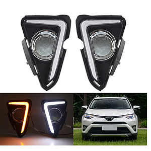 KEEN 12V Car LED DRL for 2014 2015 2016 Toyota RAV4 RAV 4 Daytime Running Light White Fog Lamp Cover With Amber Turn Signal