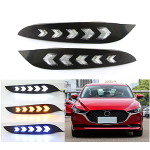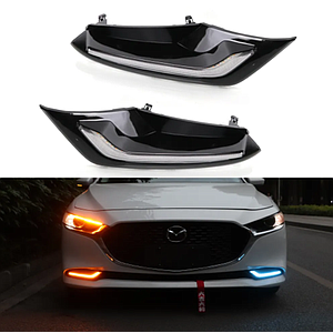 KEEN New For Mazda 3 Axela 2019 2020 LED Car DRL Dynamic Turn Yellow Signal Fog Lamp Cover LED Daytime Running Lights headlight