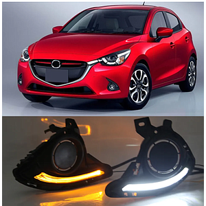 KEEN 12V Car LED Light DRL for Mazda 2 2015 2016 2017 Daytime Running Lamp with Turn Signal Fog Light Auto Head lamp