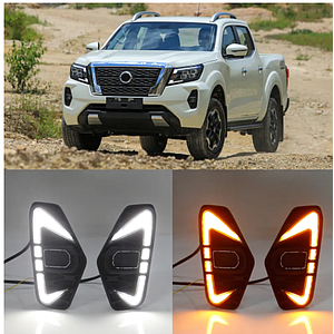 KEEN Black Gloss Cover Car Light for Nissan Navara NP300 2015-2018 led Daytime Running Light Fog Lamp Cover Led Yellow Turning